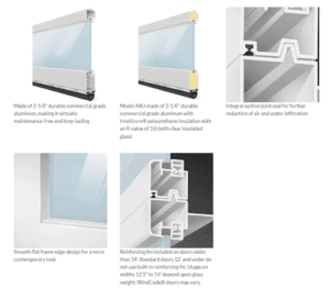 Durable, low-maintenance 2-1/8″ commercial grade aluminum frame with many glazing options