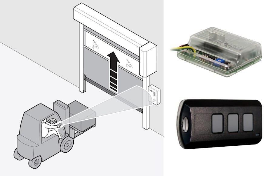 Transmitters are available to activate up to 27 doors with one transmitter.